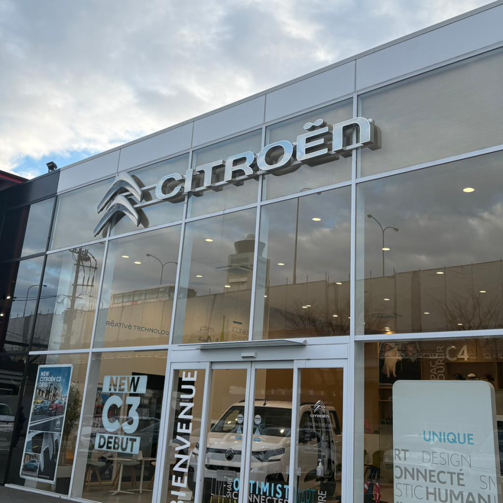 プジョー・シトロエン・DS Automobilesの3ブランドのショールームが一列に並び、合計で16台の新車展示が可能な店舗は、日本国内最大の規模を誇ります。「シトロエン福岡」は、世界各国の主要都市で新たに展開しているショールームコンセプト「La Maison」を西日本地域で初めて導入したほか、さらに、最大27台の展示が可能な認定中古車展示コーナーと5ベイのサービス工場を併設し、福岡県のみならず九州地区にお住まいのより多くのお客様にとって、フランス車の幅広い商品ラインナップと特徴ある世界観をご体感いただきながら、新車の購入からアフターサービスに至るまで、カーライフに関わる全てのご要望にお応えいたします。